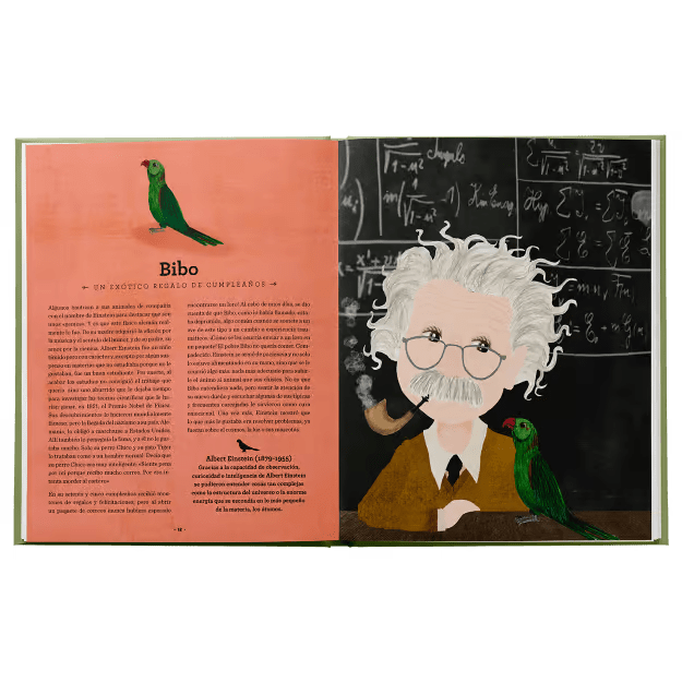 Detrás de todas estas grandes personalidades hubo una mascota que alegró sus días, un animal que de una forma u otra significó algo especial en la obra o en la trayectoria vital de genios irrepetibles tan dispares como Frida Kahlo, Andy Warhol, Gustav Klimt, Virginia Woolf, Charles Dickens, Dorothy Parker, Dalí, Einstein, Freud, Newton, Picasso, Mozart, Hemingway, T. S. Elliot, Matisse o Karl Largelfeld.
